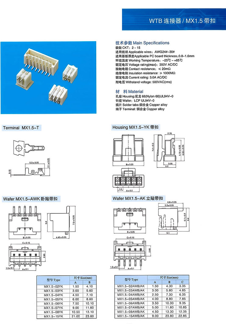 MX1.5帶扣WTB連接器