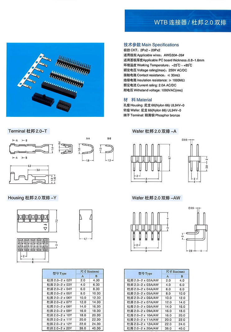 杜邦2.0雙排連接器